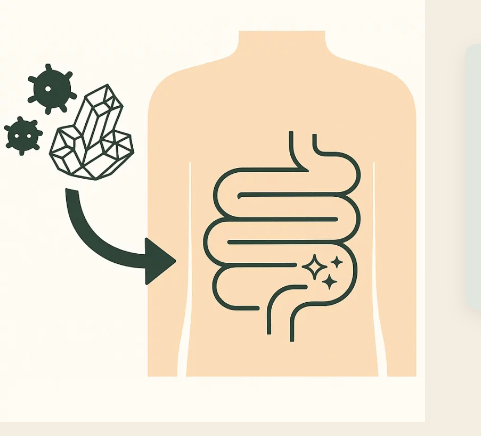 Mineral volcánico natural (clinoptilolita) con una estructura única tipo “panal” que actúa como un adsorbente inteligente en el intestino.